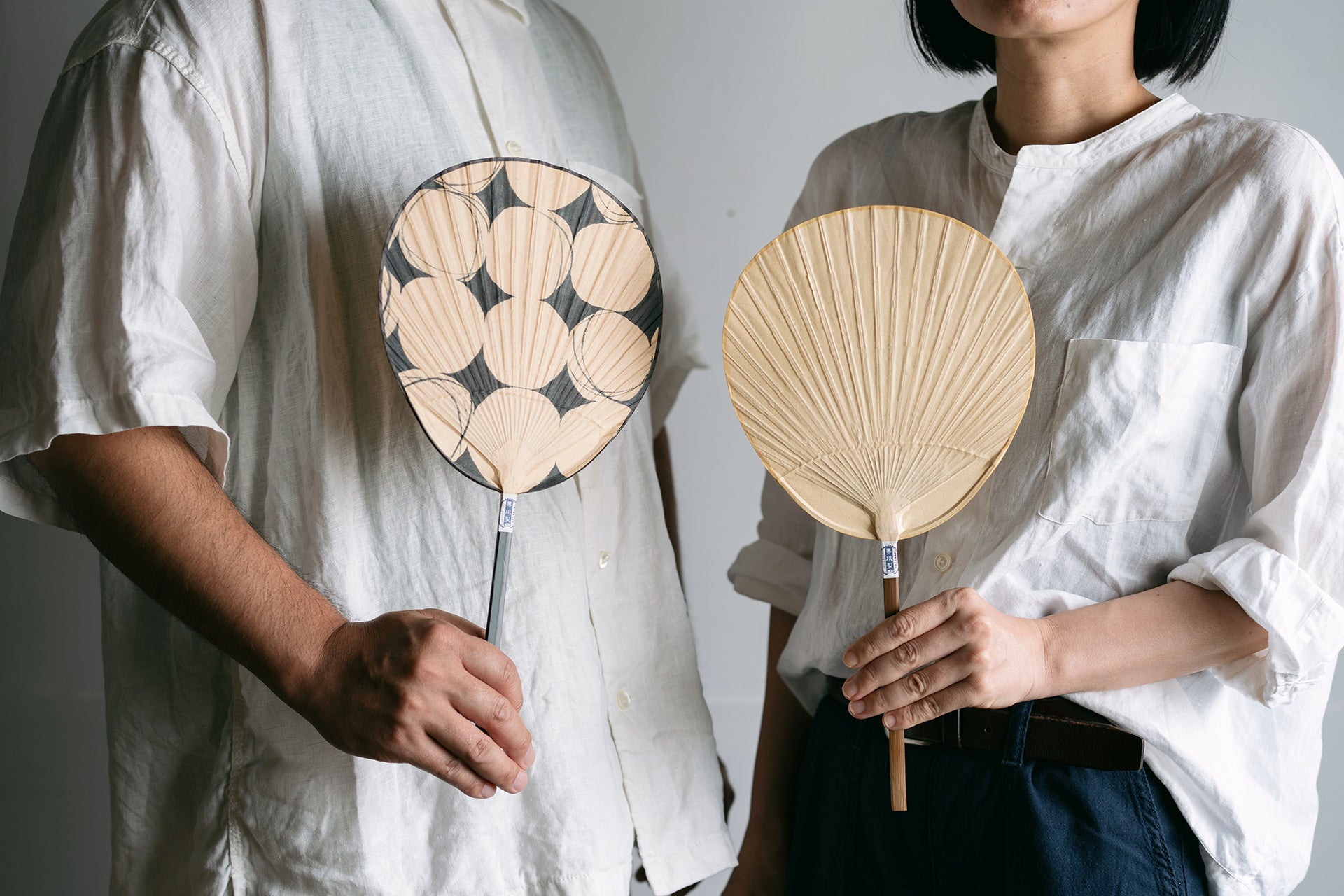 シャープな黒のダイヤ模様と、潔さが映える無地。どちらも装飾を抑えたぶん、うちわ本来の美しさが際立ちます。静かな存在感と伝統が息づく一枚だからこそ、すっとあおぐその所作に、たおやかな気品が宿ります。