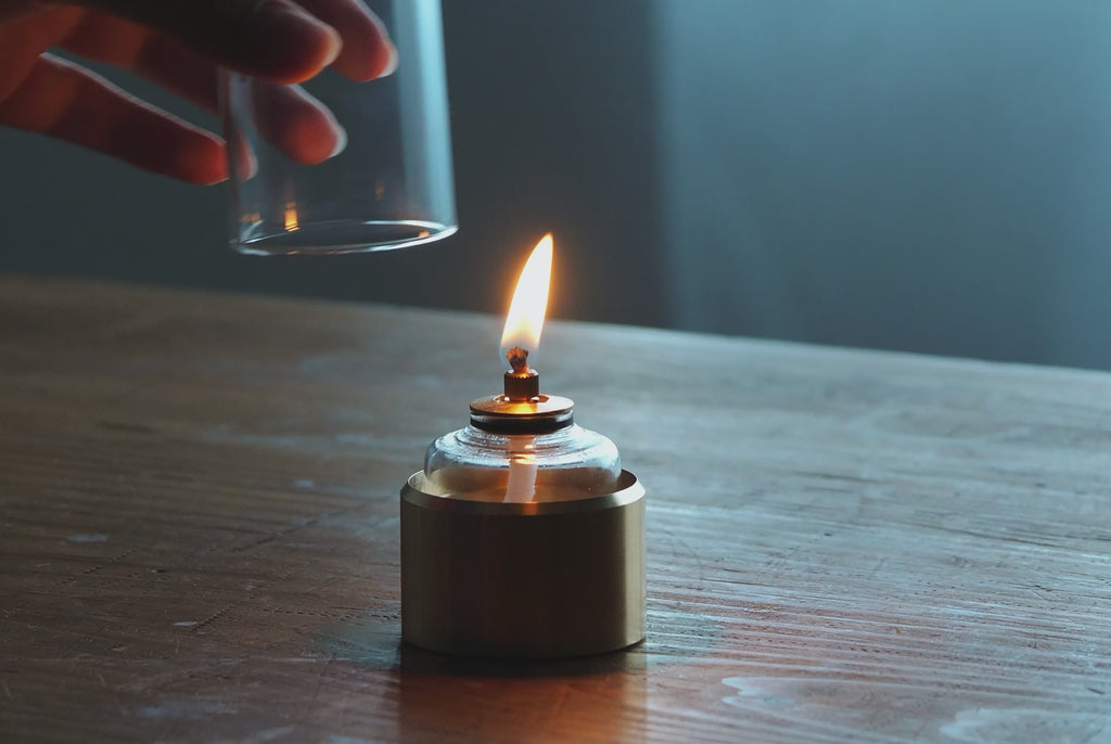Dancing Lampの場合はオイルランプに火を付けて、ガラスのカバーを被せるとあら不思議。炎がまるで意思をもっているかのようにゆらゆらと揺れるのです。