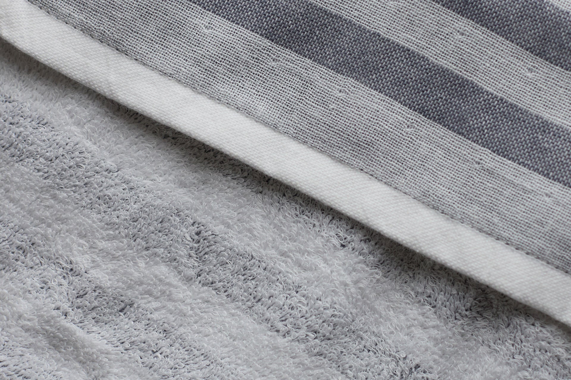 「シマ」は、ガーゼとパイル、2種類の素材を裏表に重ねて織り上げてできたタオル。ガーゼのやさしいやわらかさと、パイルのふんわり感、両方の異なる肌ざわりを楽しめます。
