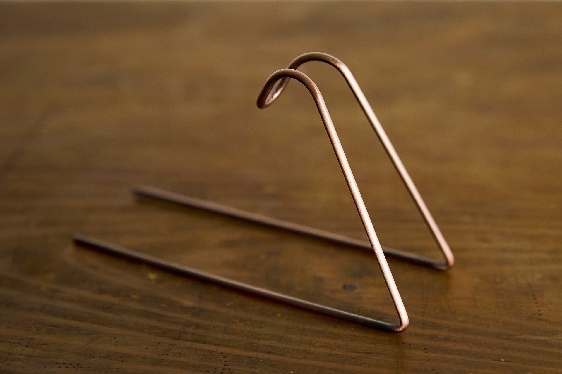 ワイヤーでつくり出された、軽やかで美しいフォルム。ステンレスにブロンズメッキを施した深みのある色味は、台所や洗面所にもなじみます。