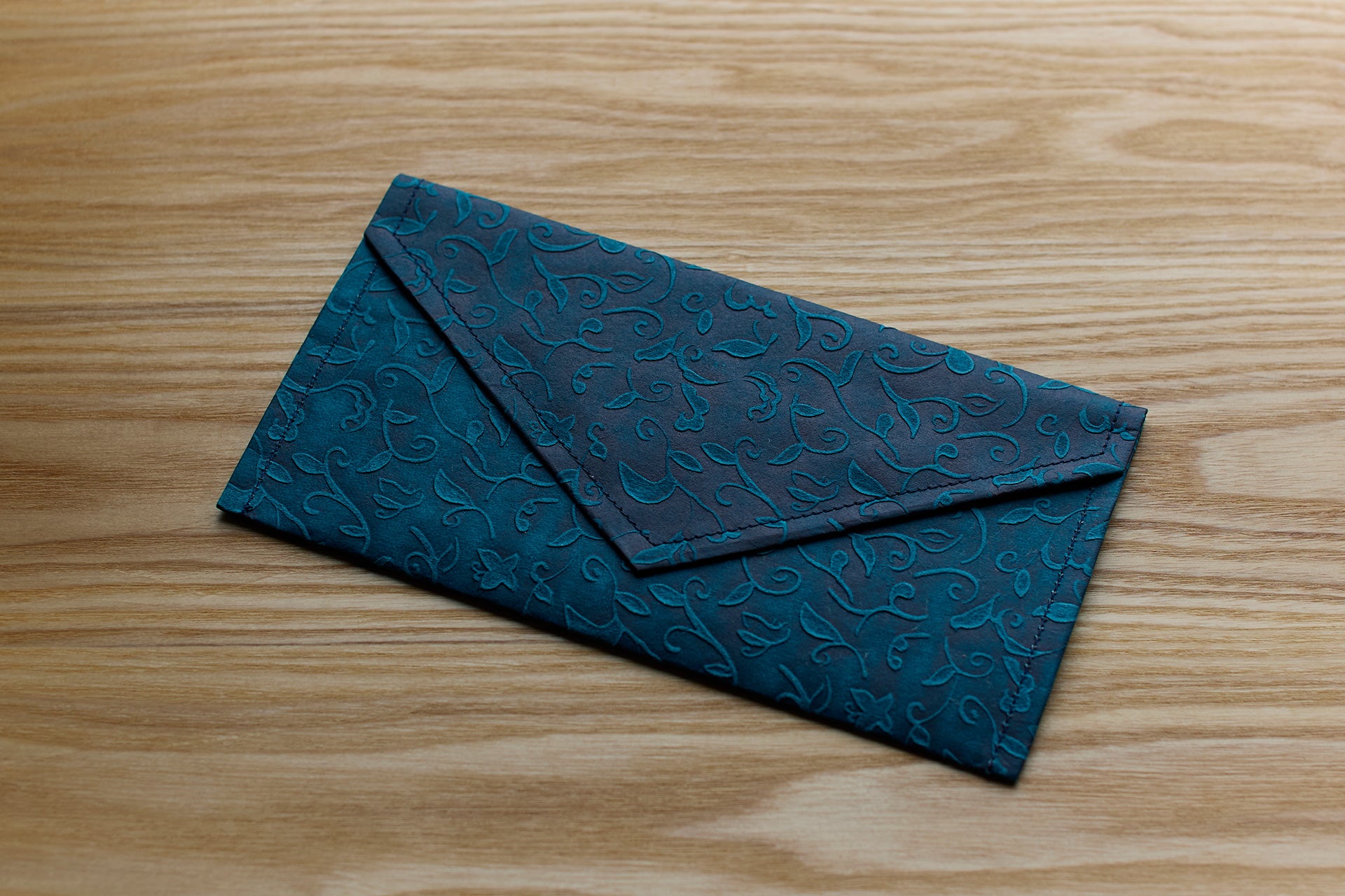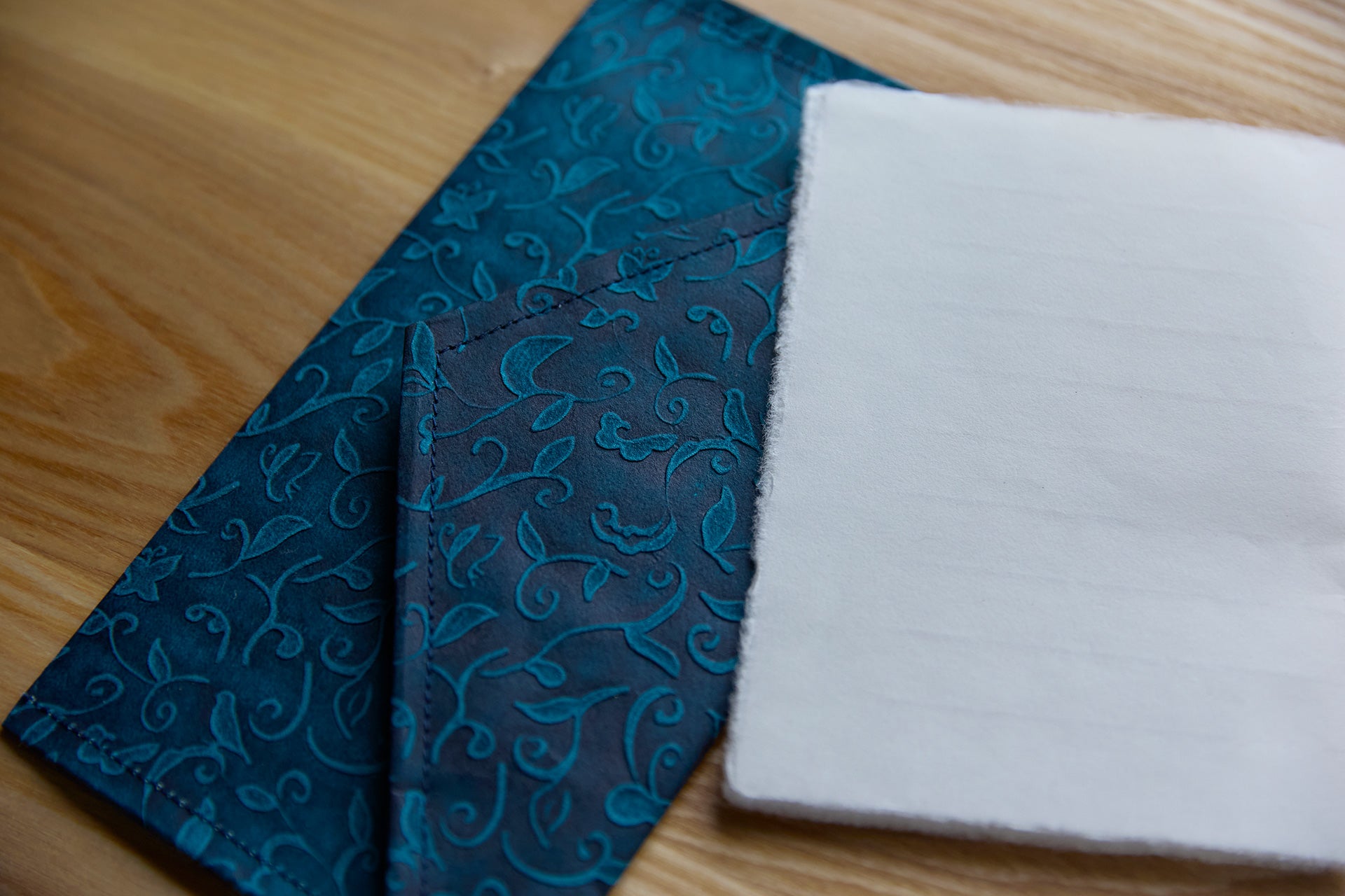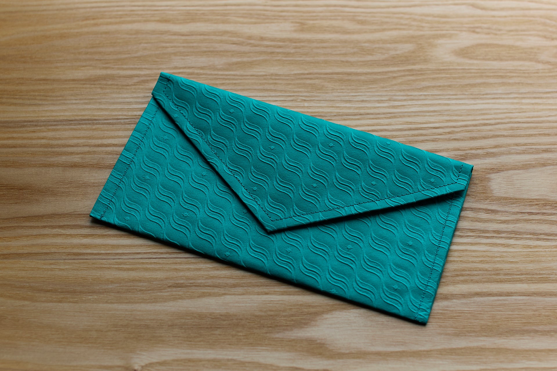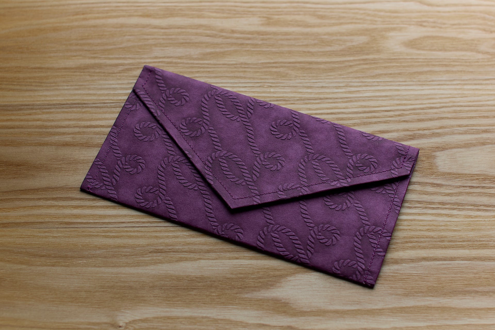エンベロープは、紙漉きから染色まで、一つひとつ手作業で行われています。そのため、同じ色・模様のものでも、裁断箇所や個体により、色や柄の出方に個体差があります。