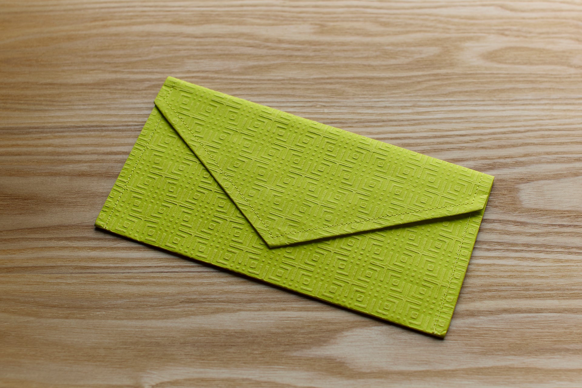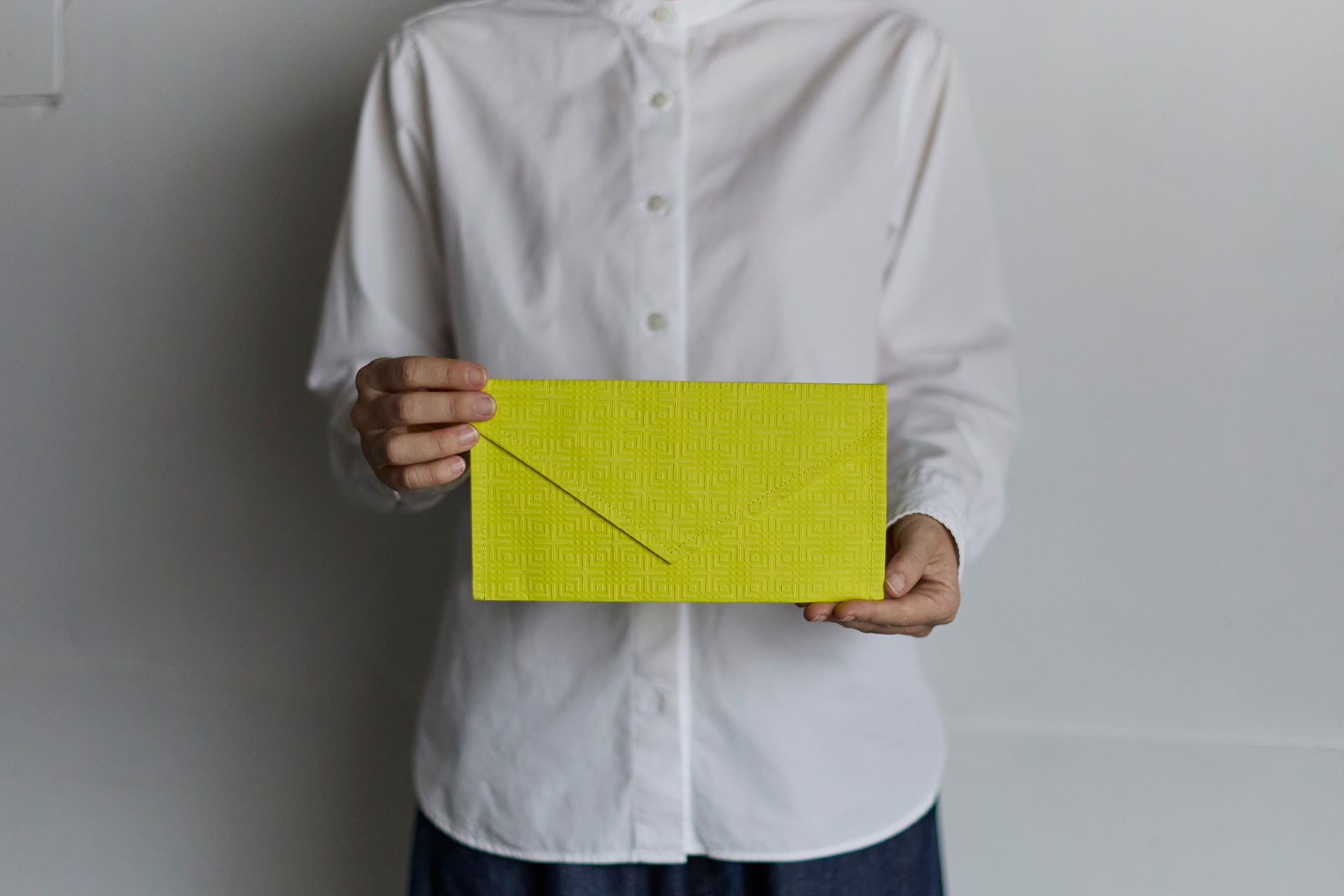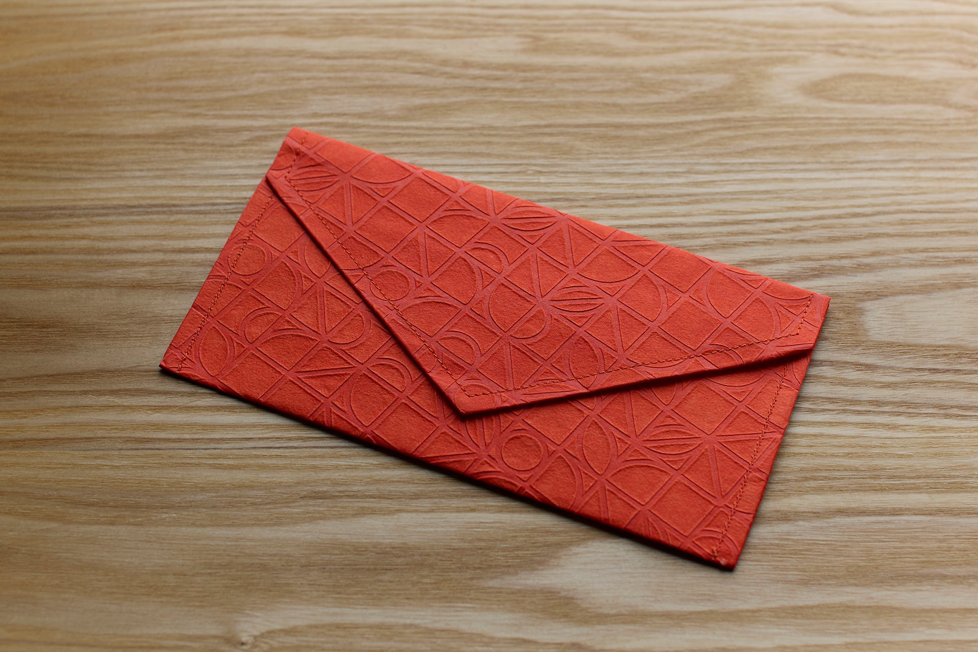 エンベロープに使われているのは、「山次製紙所」が開発した和紙「浮き紙」。表面にはっきりとした凹凸が施されており、模様がまるで浮き上がっているように見えるのが特徴です。