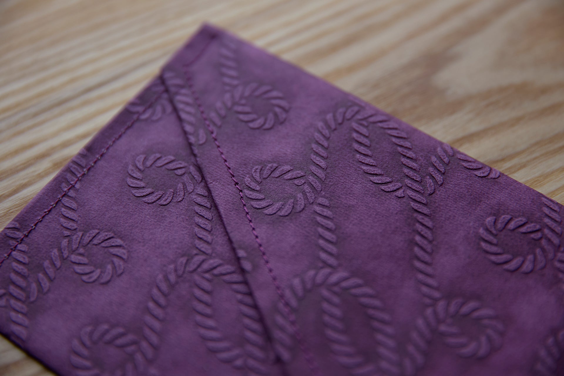 封筒のようなユニークな形に施された、モダンで美しい「浮き紙」の風合いに目を奪われます。