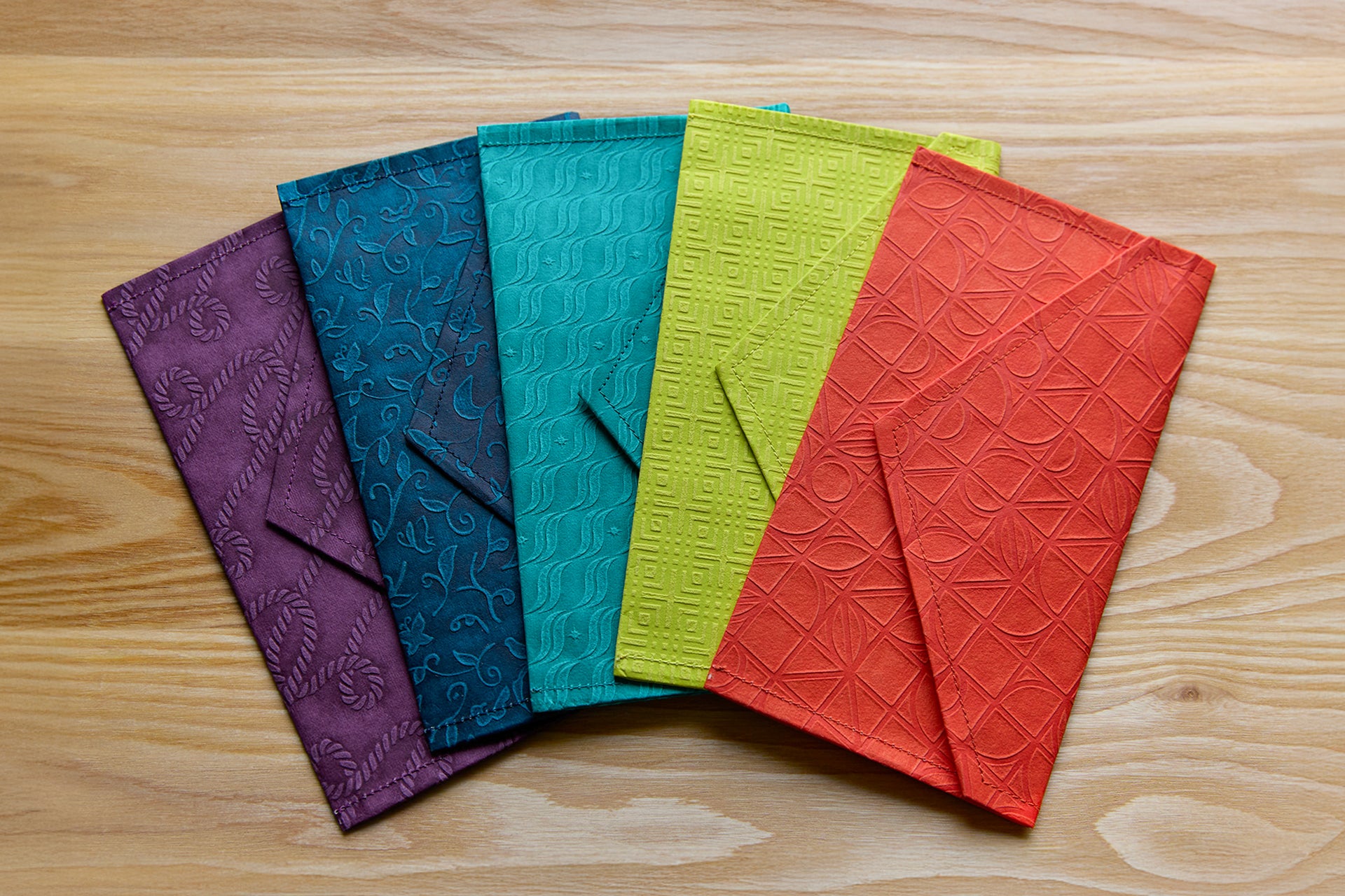 色ごとにユニークなエンボス模様が入っていて、見ても触っても楽しい和紙アイテム。